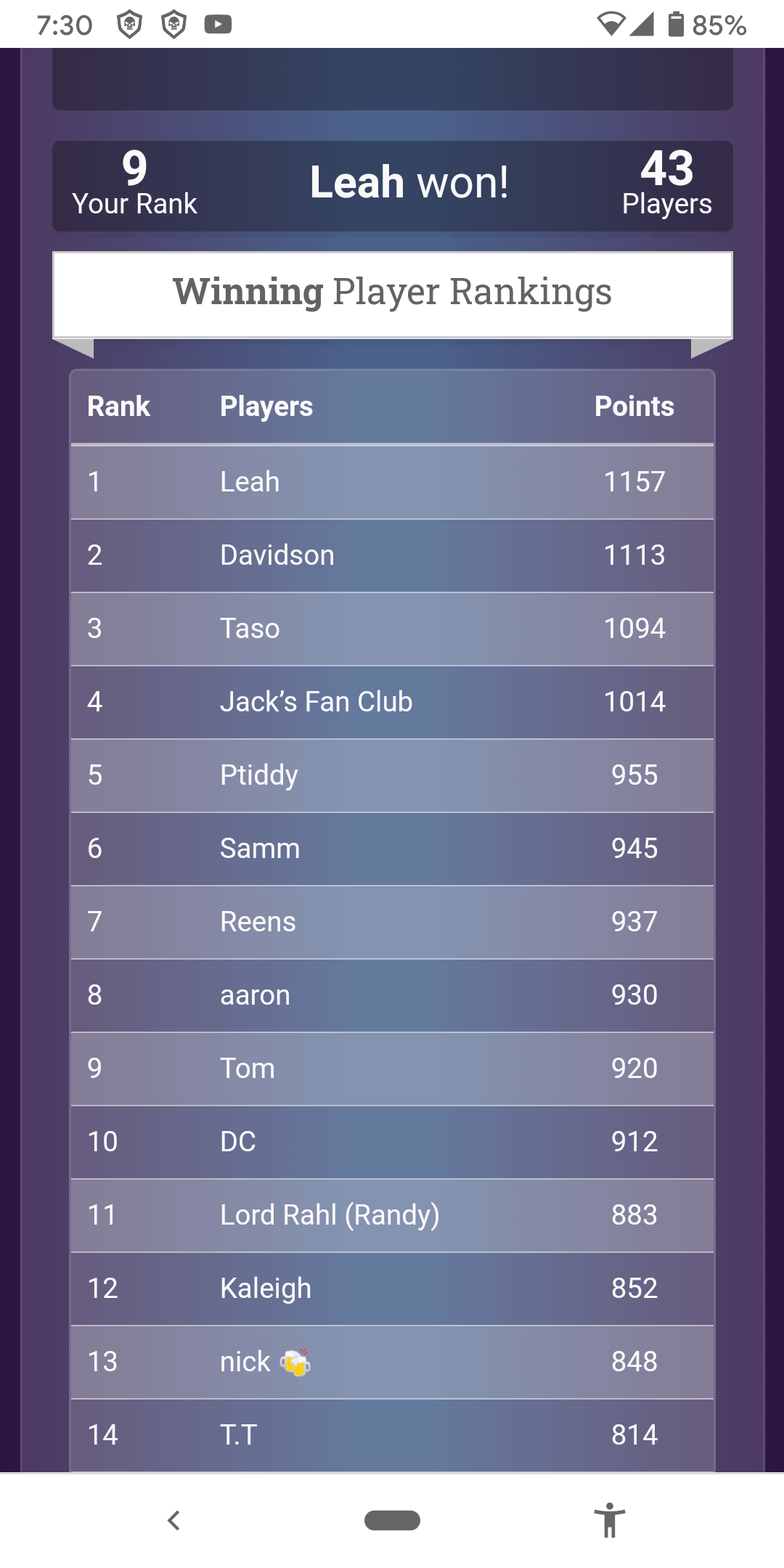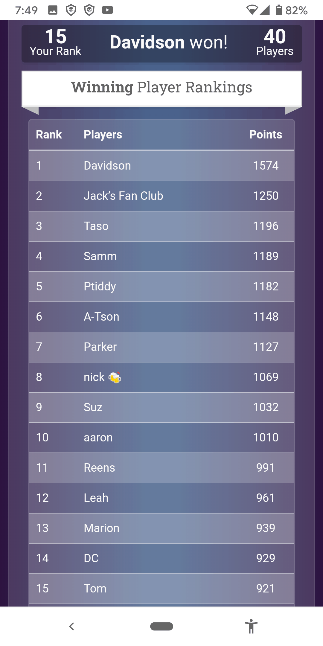 We had a blast with our Trivia Tournament last night. The technology worked flawlessly! Over 40 people were playing. Lots of laughs. You can guarantee we are doing this again! The winner of thr tournament was Reen’s boyfriend Davidson, followed by Coach Leah and Taso got 3rd. Stay tuned for the next LiveFit Social Night.